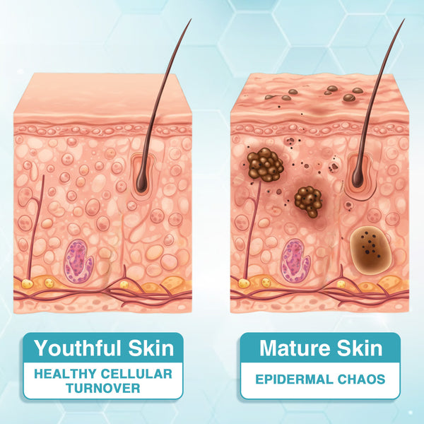The real issue may be something called “Epidermal Chaos.” In our youth, the skin naturally renews itself through a process called cellular turnover, which efficiently clears away dead cells and minor imperfections before they surface.