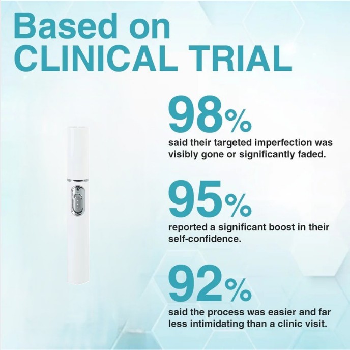 When you press the button, the pen emits a precise, micro-focused beam of light that works to vaporize only the cells of your unwanted imperfection.